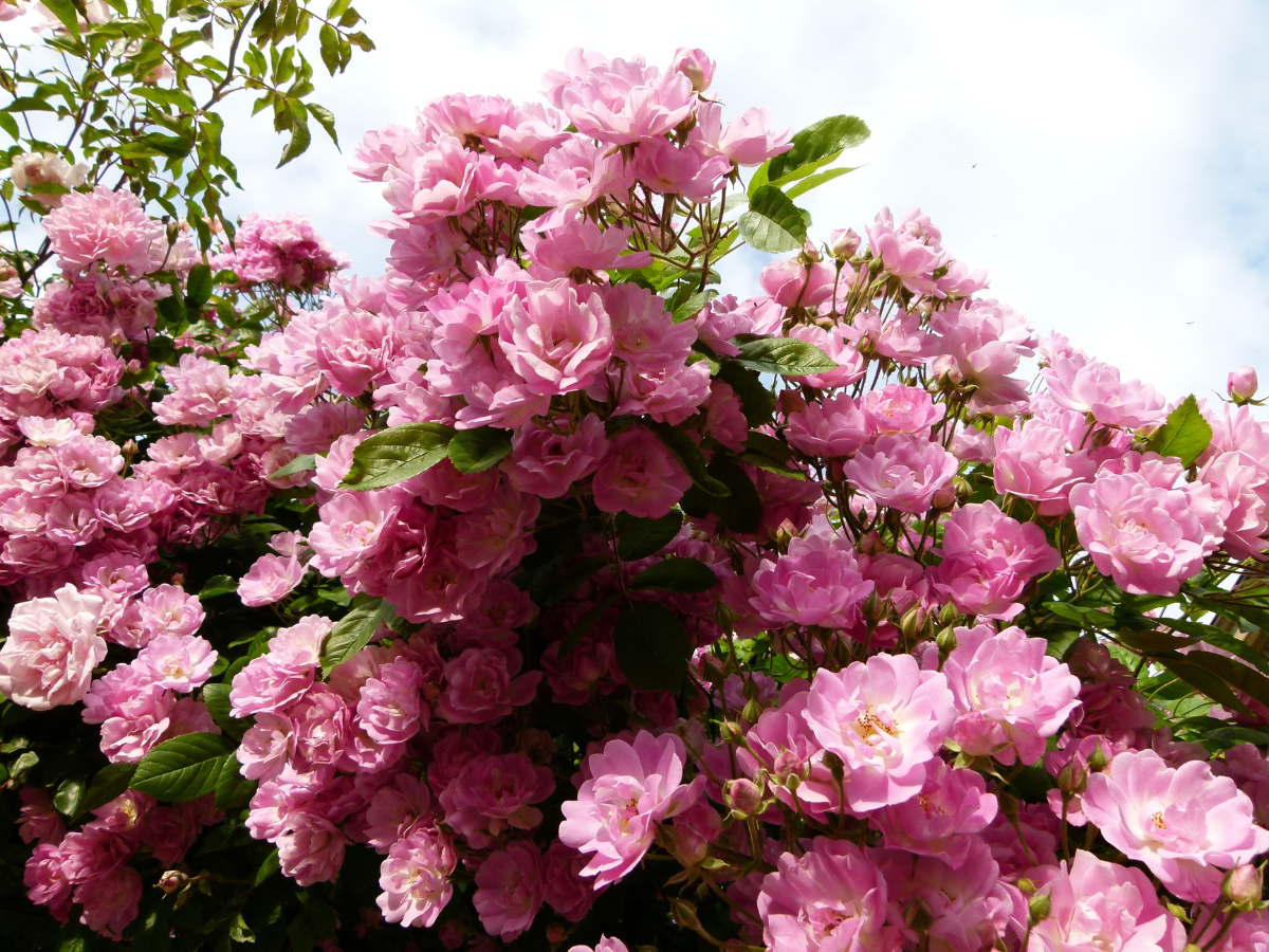 Quando carregada, a roseira é um verdadeiro encanto aos olhos! Apesar de seus espinhos, traz muita beleza a quem vê.
